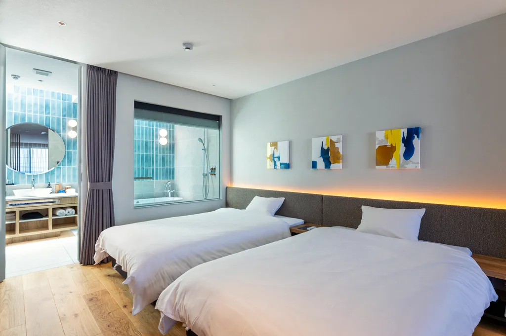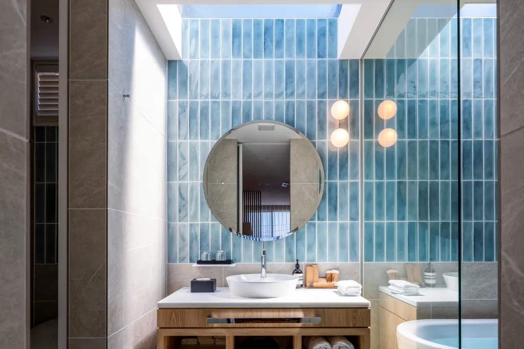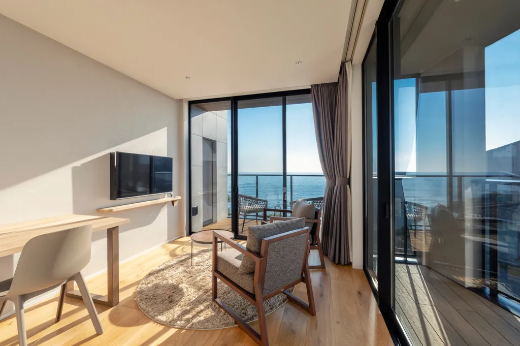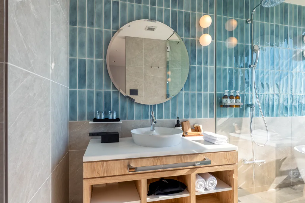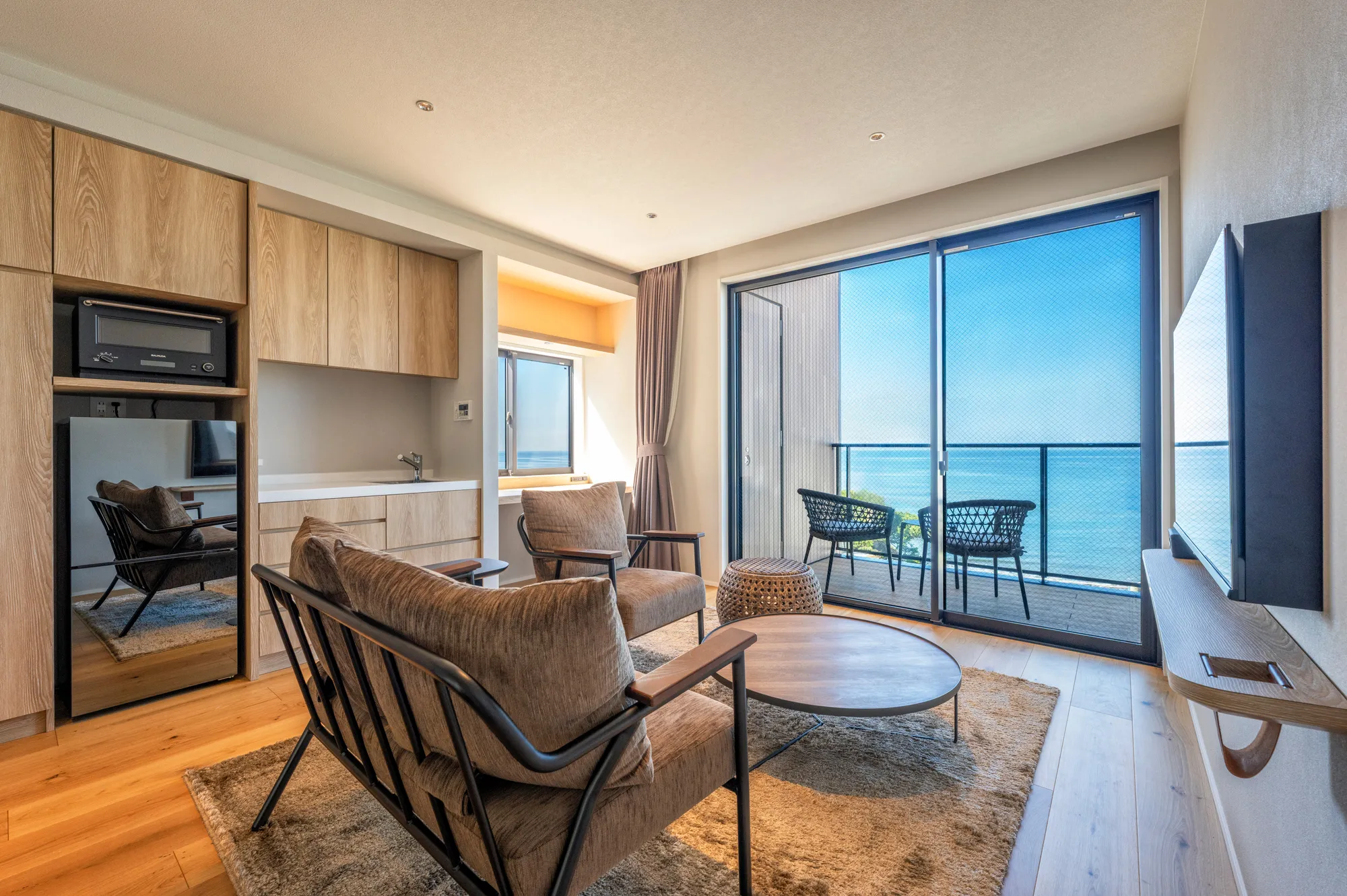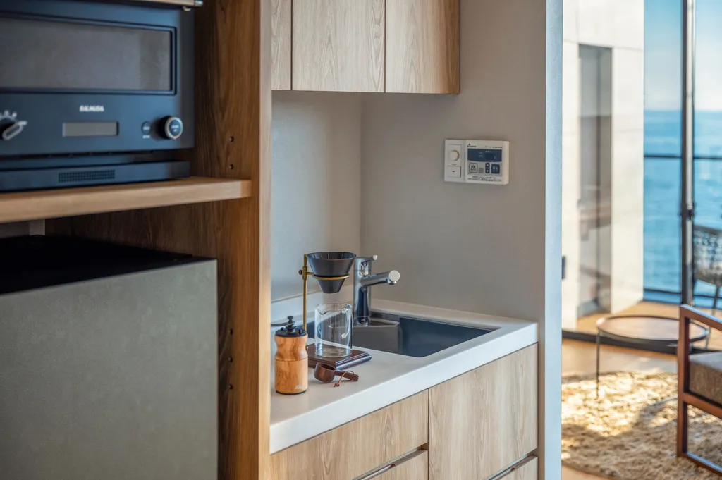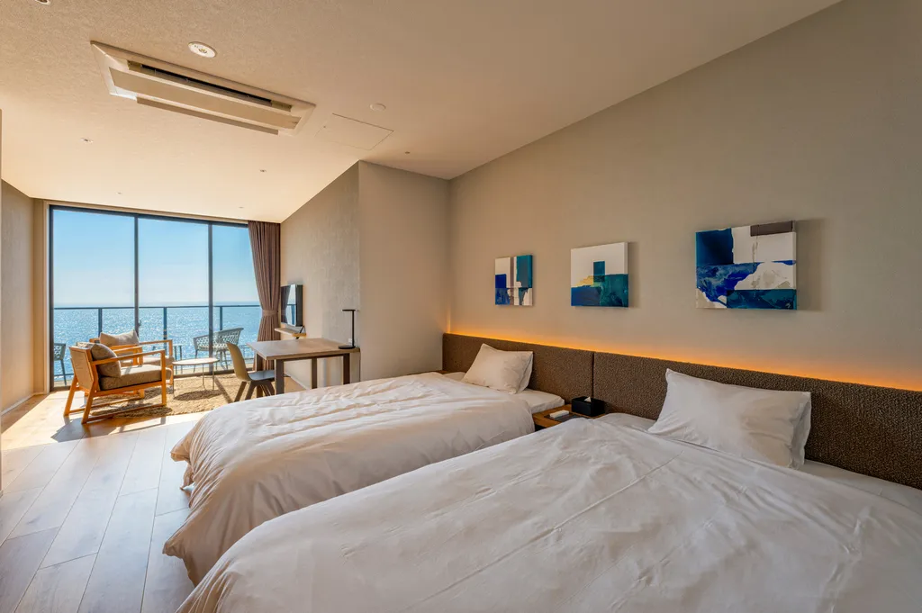 ※バスルームの配置はそれぞれの部屋で異なります。すべての部屋のバスルームが海沿いの配置ではございません。