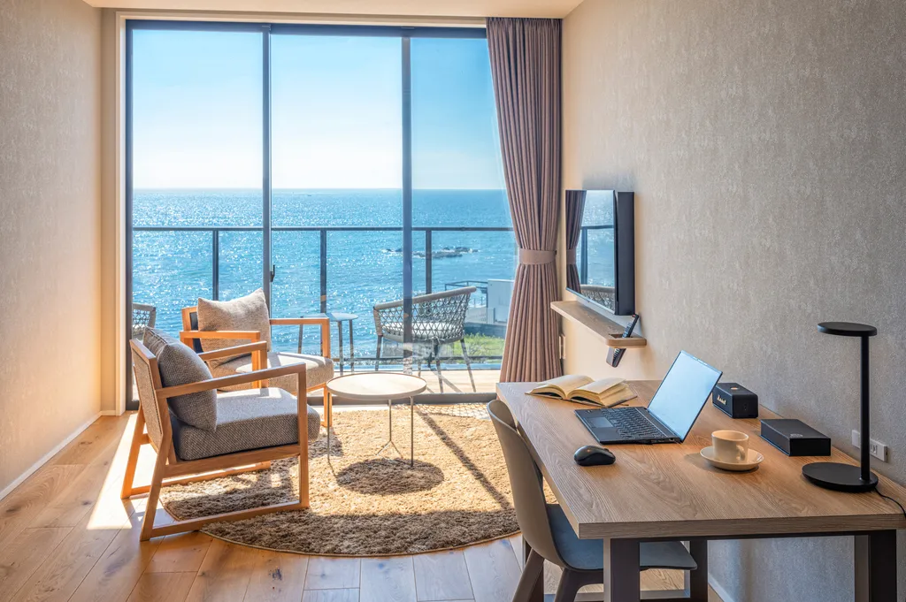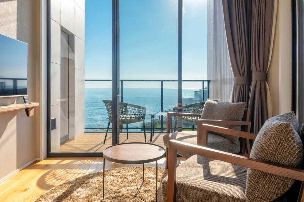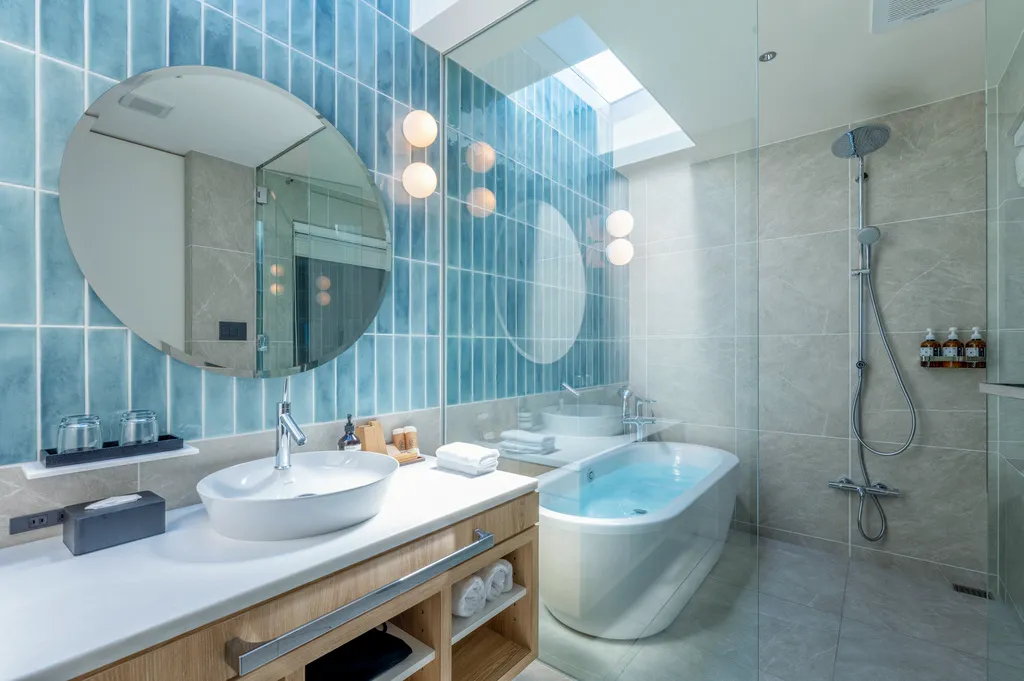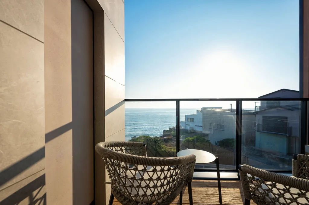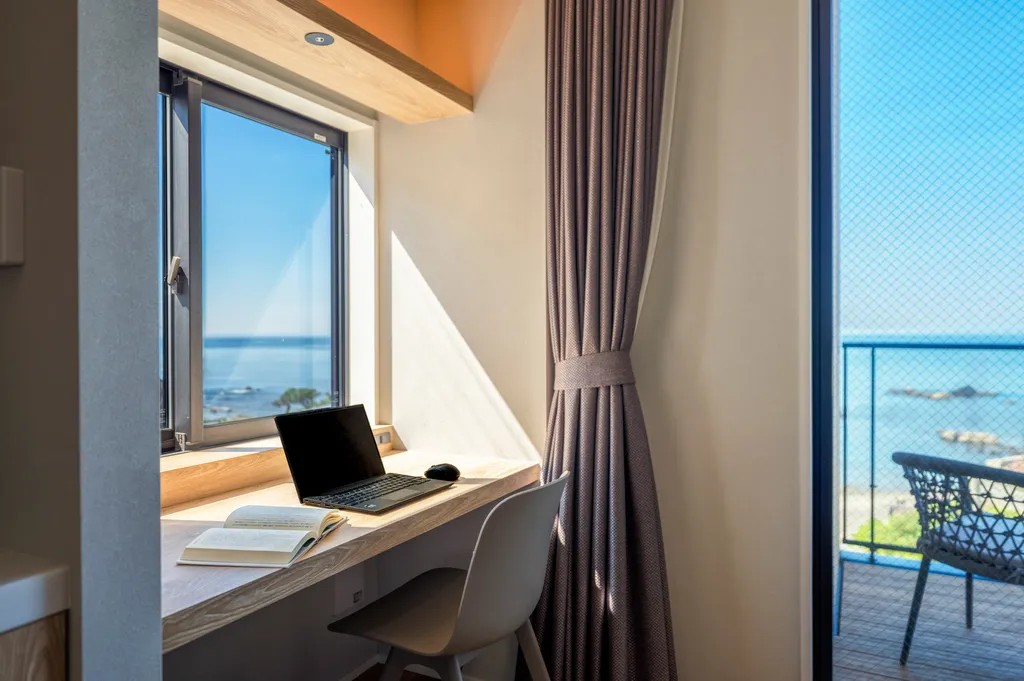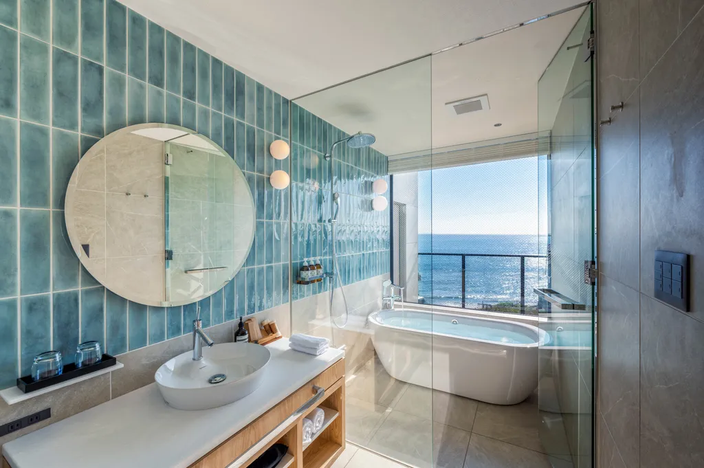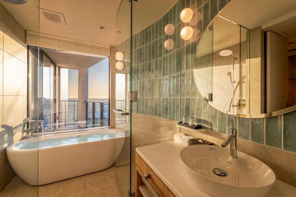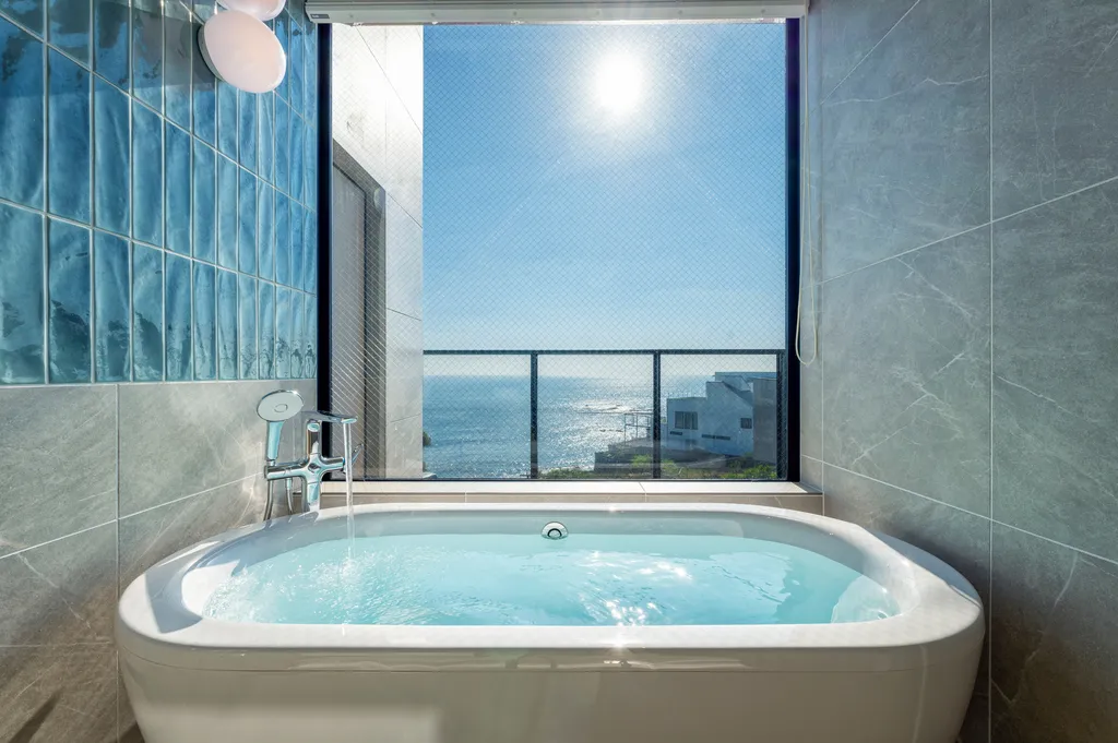 海を一望できるバスルーム。