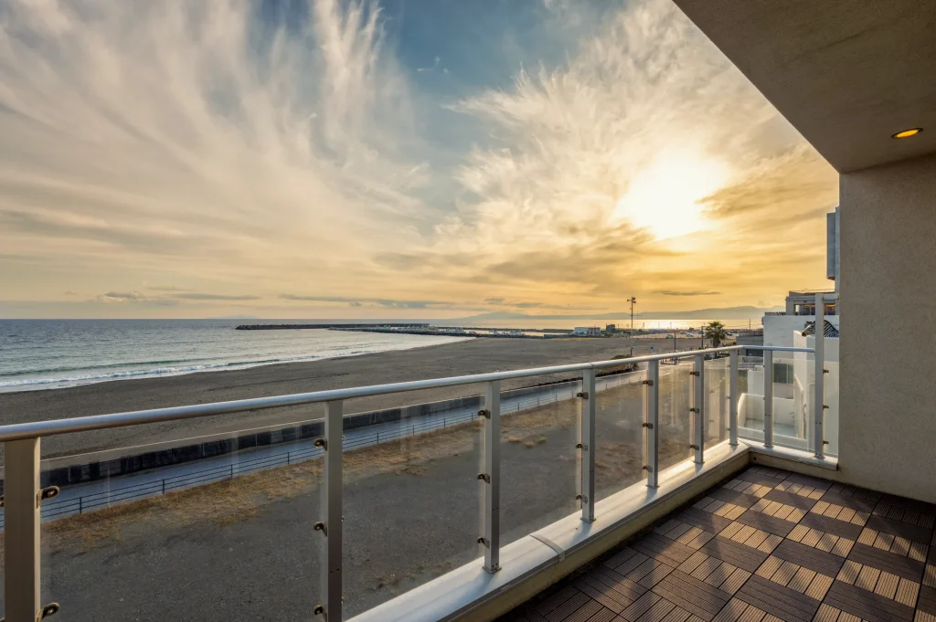 国道134号線の海側に位置し、ベランダや窓からは相模湾のパノラマが広がります。
