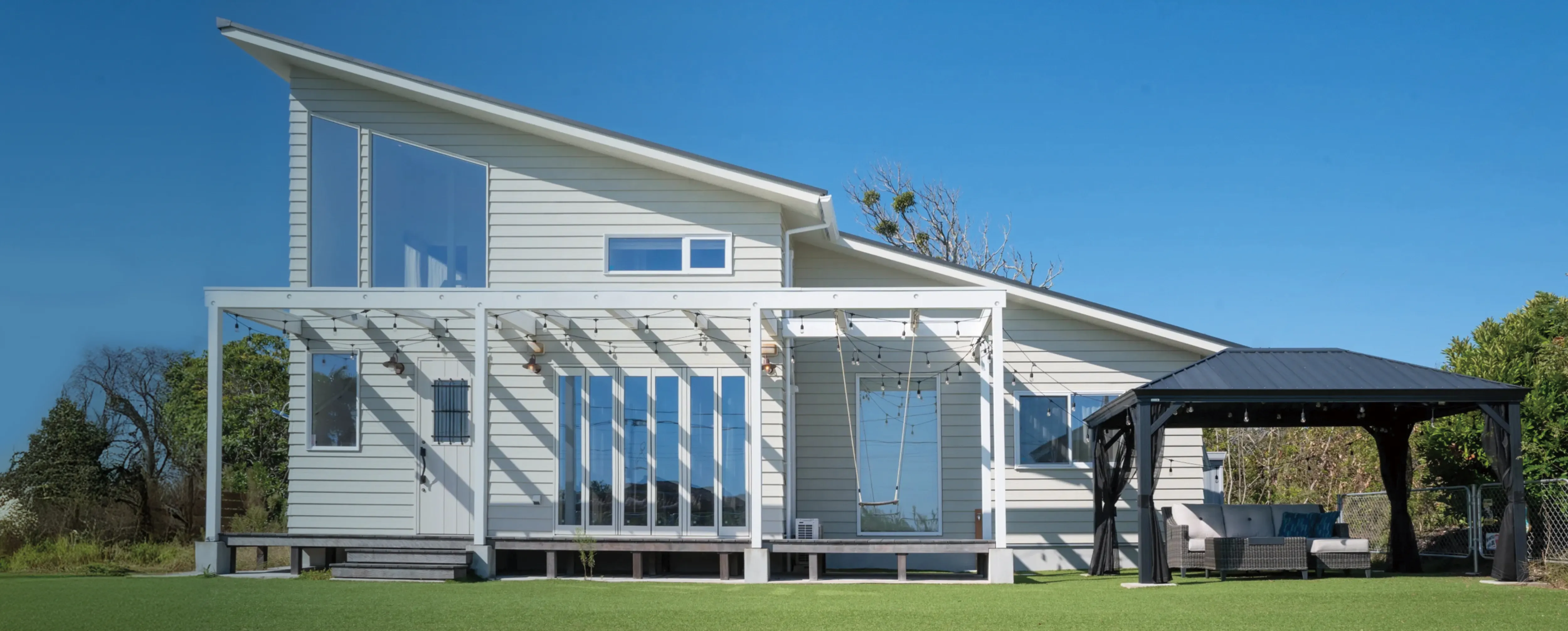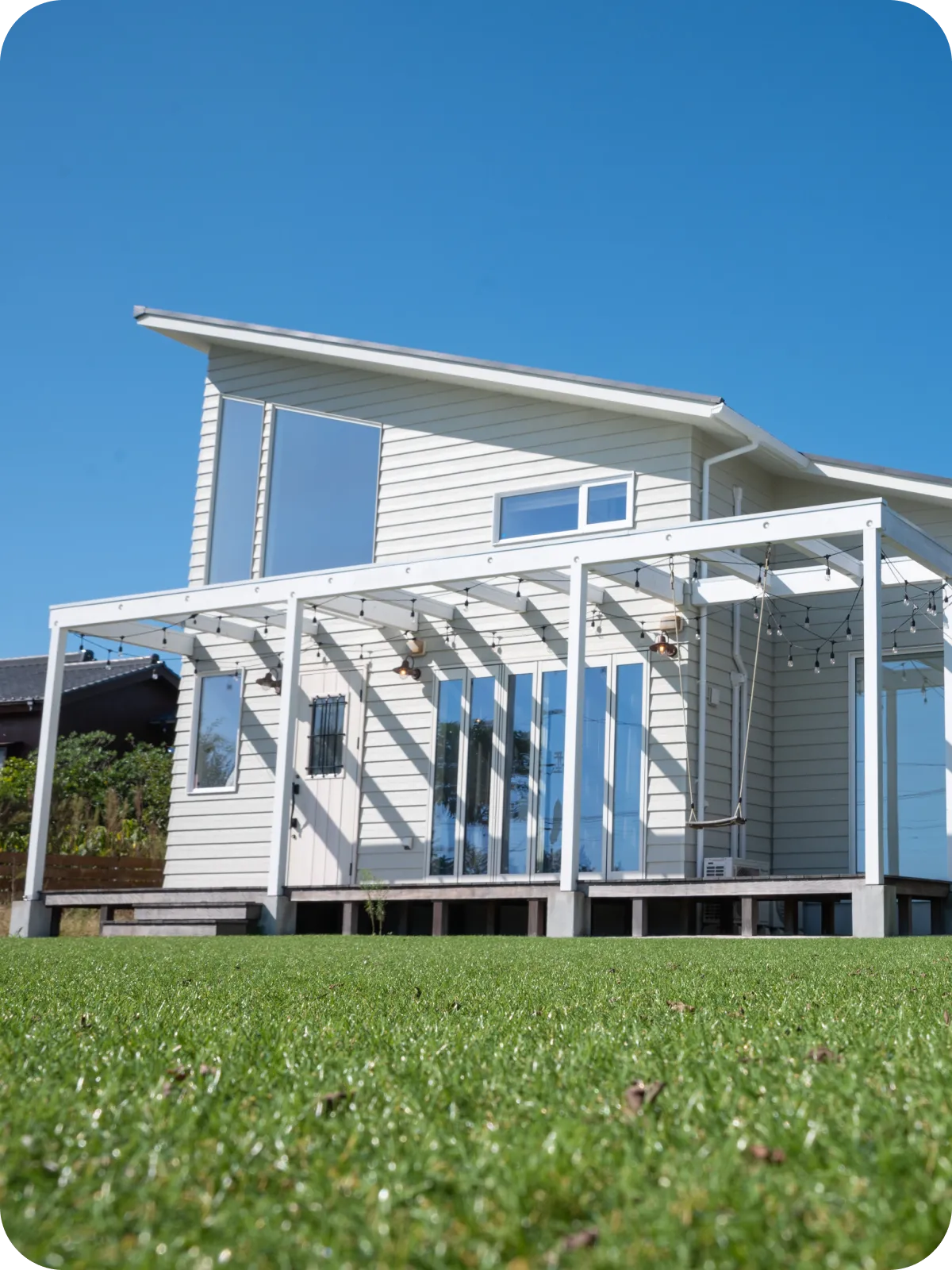 ウッドデッキでBBQ、広々とした芝生の庭でスポーツやヨガ、海のそばで、様々なレジャーを楽しめます。