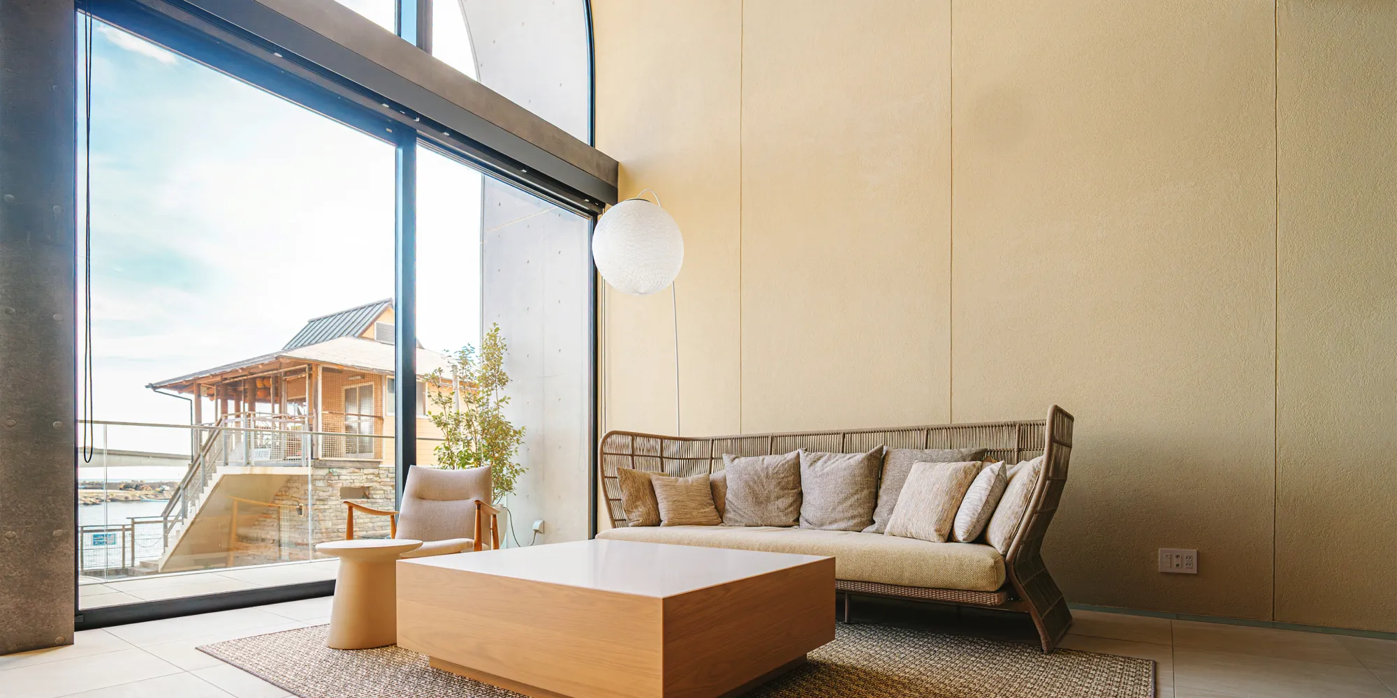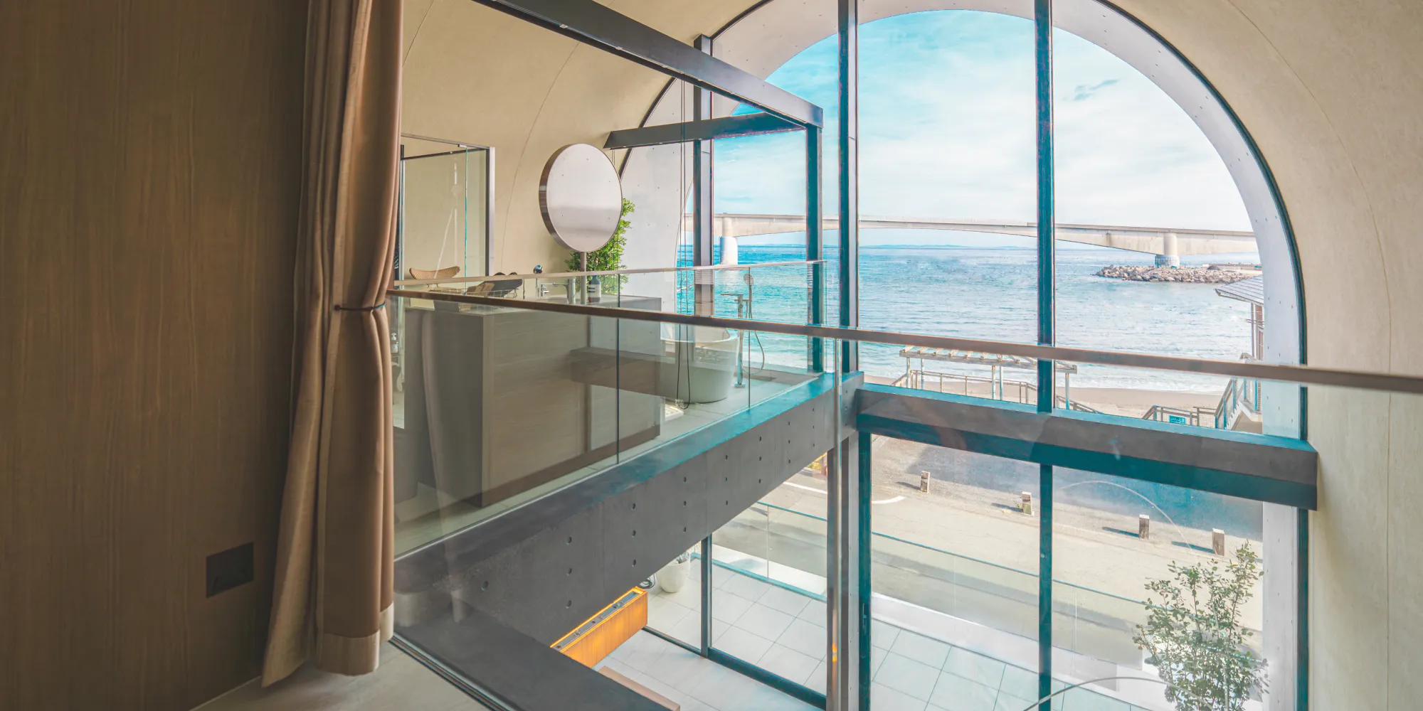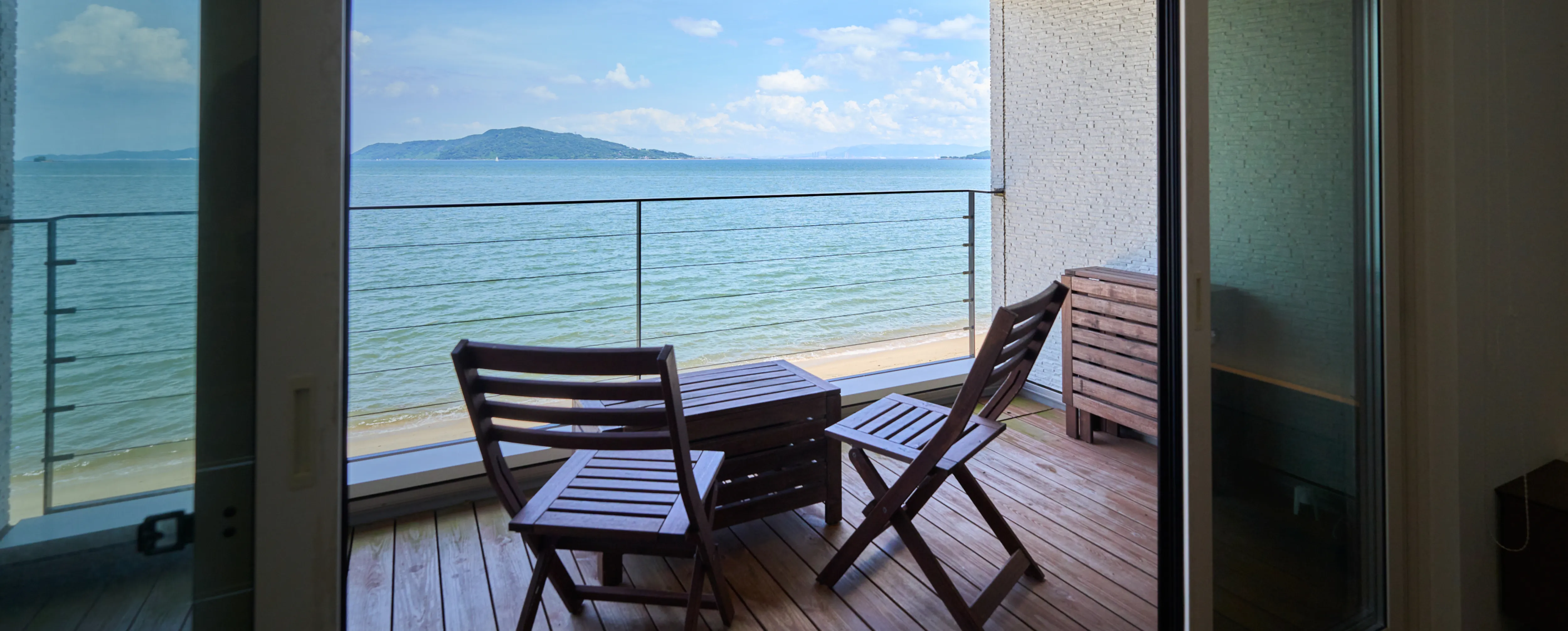 ガラス越しに広がるオーシャンビューと心地よい潮風が、